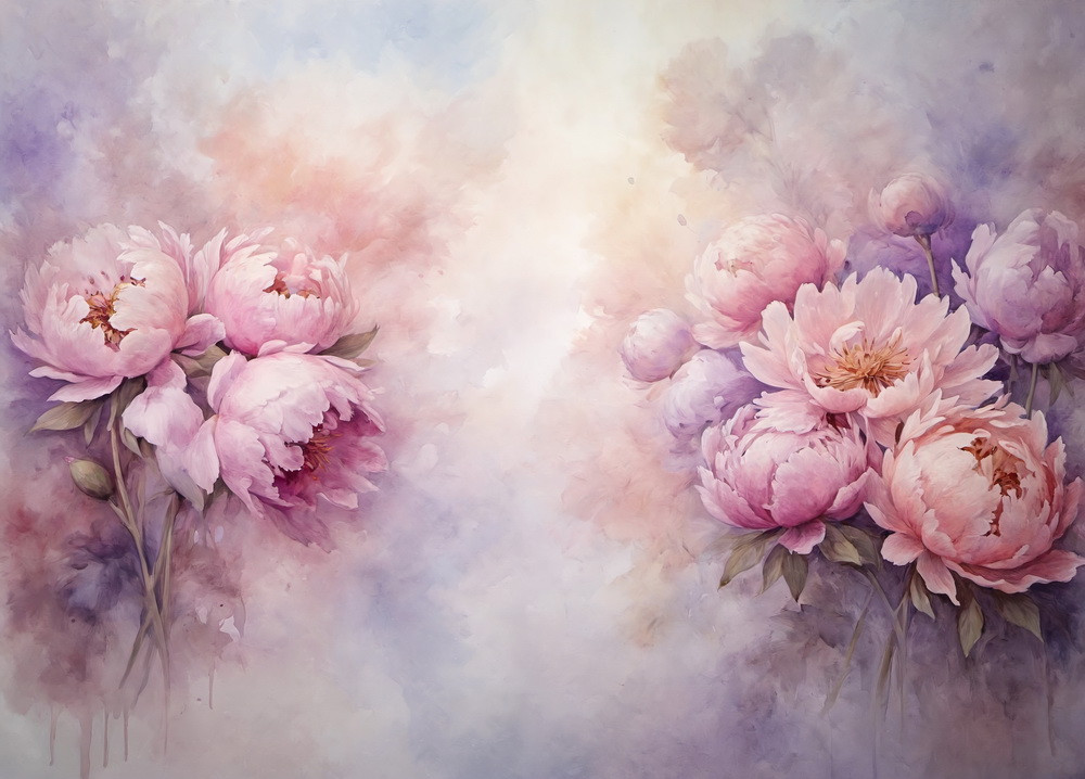 На изображении представлен коллаж из четырех акварельных картин с цветами.В верхнем левом углу изобр..