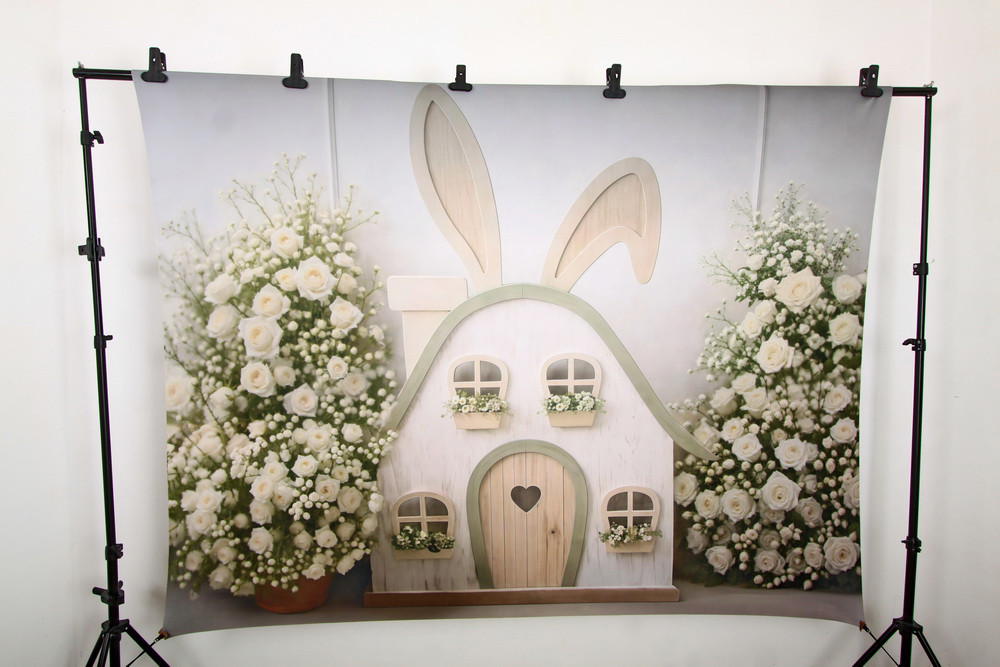 На изображении представлен декоративный домик в пастельных тонах, стилизованный под кроличий домик. ..